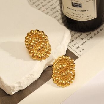 Make a sophisticated statement with these Irregular Shape Gold Studs. Featuring a unique “crushed” or molten texture, these earrings capture the light beautifully, offering a high-end designer aesthetic that elevates any outfit.